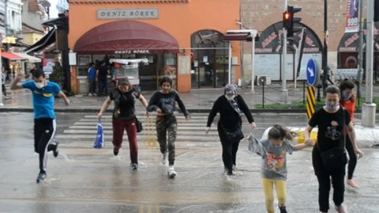 Meteoroloji Genel Müdürlüğü'nün dün sabah saatlerinde Edirne için sağanak yağış uyarısı yapmasının ardından akşam saatlerinde meydana gelen yağış ile yollar adeta nehre dönüştü. Yaklaşık 15 dakika boyunca süren gök gürültülü sağanak yağış, ulaşımı olumsuz etkiledi. Sağanak yağış sırasında sokakta olan bazı vatandaşlar korunabilmek amacıyla esnaf dükkânlarına sığınırken; bazı vatandaşlar da Bankalar mevkiinde bulunan trafik ışıklarında yoldan karşıdan karşıya geçebilmek için yoğun çaba sarf ettiler. Gök gürültülü sağanak yağışı sırasında zaman zaman dolu yağışı da meydana gelirken; yağmur yağışı 15 dakika sonra sona erdi.