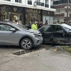 Kaza anı bir iş yerinin güvenlik kamerasınca kaydedildi.