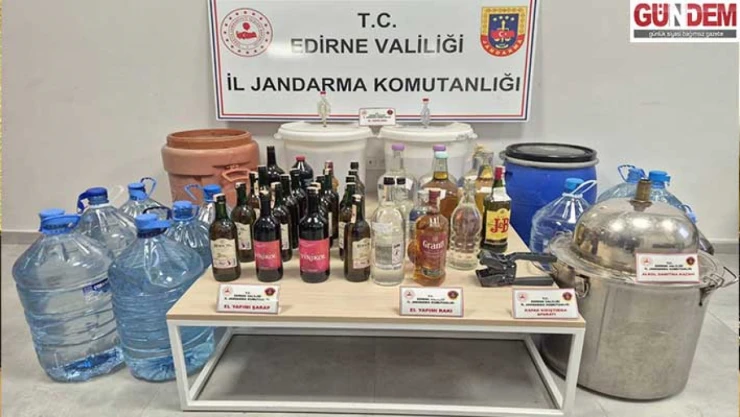 Edirne'nin Keşan ilçesinde evinde sahte içki üreten şüpheli yakalandı.
