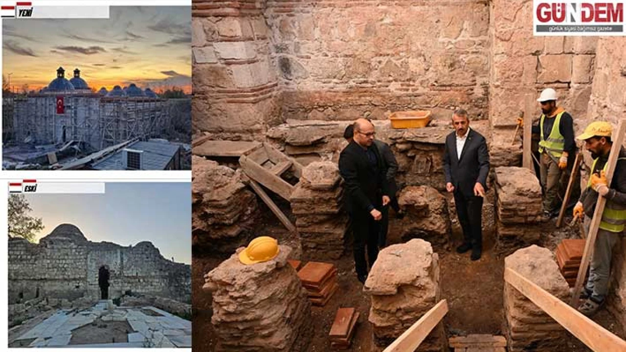 Edirne'de erken dönem Osmanlı mimarisinin en önemli hamam örneklerinden Gazi Mihal Hamamı'nda restorasyon çalışmaları sürüyor.