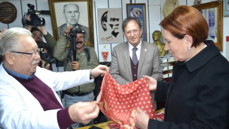 Akşener'e Edirne Kırmızı'ndan yapılan şal hediye etti. Akşener, Edirne