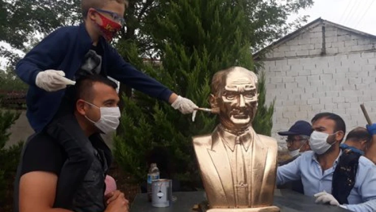 Edirne'de gönüllü gençler tarafından köylerde atıl durumda bulunan okullardaki Atatürk büstü onarımı ve çevre düzenlemesi projesinde çalışmalar aralıksız sürüyor. Gönüllü gençler hafta sonu Edirne'nin Karayusuf, Demirhanlı ve Musabeyli köylerindeki okullarda çalışma yaptı. Okullardaki Atatürk büstlerinin bakım ve onarımı için yaklaşık bir haftadır çalışan genç gönüllülere, destekler de artıyor. Edirne'de Plevne İlköğretim Okulu'nda eğitim gören 8 yaşındaki Poyraz Ateş Kuş, gençlerin yaptığı çalışmalara katılmak için annesi ve babası ile Cumartesi günü Karayusuf, Demirhanlı ve Musabeyli köyündeki etkinliğe katıldı. Gönüllü gençlerin takdirini toplayan minik Poyraz, Atatürk büstü boyadı. Boyu yetmeyince babasının omuzunda Atatürk büstü boyayan Poyraz, solmuş Türk bayrağı değiştirilen direğe İstiklal Marşı eşliğinde bayrak çekti. 'Atatürk bize bu ülkeyi bıraktı. Bize bu vatanı bırakan Atatürk'le ilgili bir çalışma olduğu için buraya katıldım. Atatürk'ü çok seviyorum' diyen minik Poyraz, bu davranışlarıyla büyük takdir topladı.