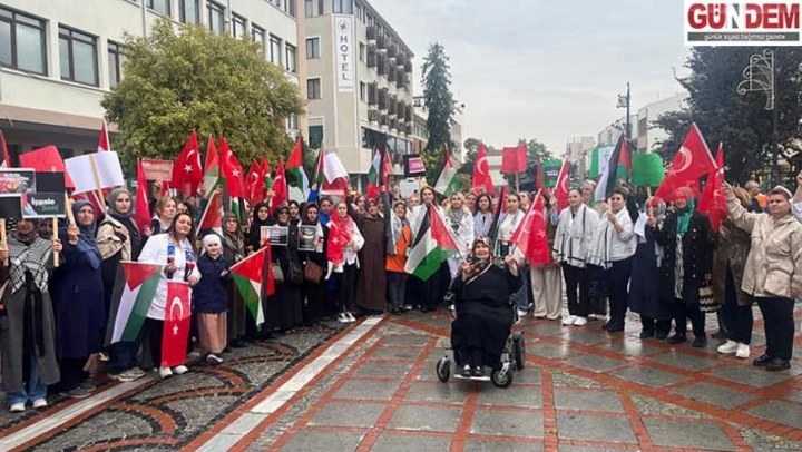 'Bugün burada anneler, gençler ve vicdan sahibi herkes insanlık için buluştu. Gazze, yitirilen çocuklukların, yarım kalan umutların adıdır. Kadınlar olarak Gazze'nin sessiz çığlığına ses olmak için meydanlardayız.'