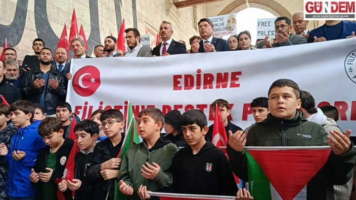Filistin'e Destek Platformu adına Önder Edirne Şube Başkanı Mehmet Kuzu da konuşma yaptı.