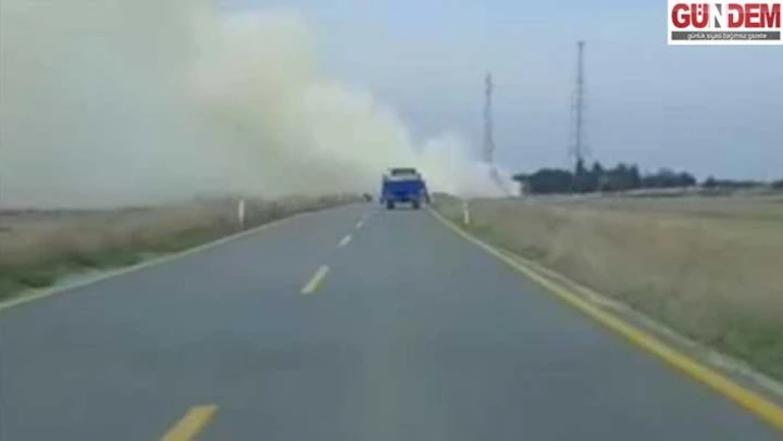 Kaymakamlık tarafından yapılan sosyal medya paylaşımında, anız yakılan bir tarla ve yanan tarlanın dumanının kara yoluna sirayet ettiği görülen bir fotoğraf yer aldı.