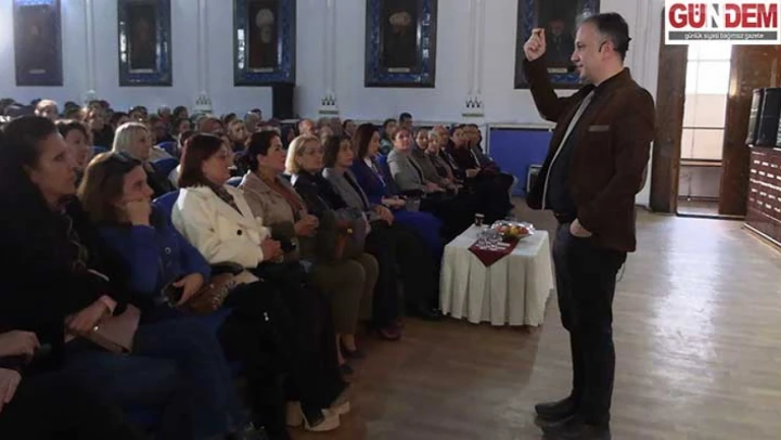 Seminerde sunum yapan Psikolojik Danışman ve Eğitmen Mehmet Hilmi Eren, çocukların eğitim yolculuğunda ailenin belirleyici rolüne dikkat çekerek, sağlıklı iletişim kurmanın ve bilinçli ebeveynlik anlayışının çocuk gelişimindeki etkilerini katılımcılarla paylaştı.