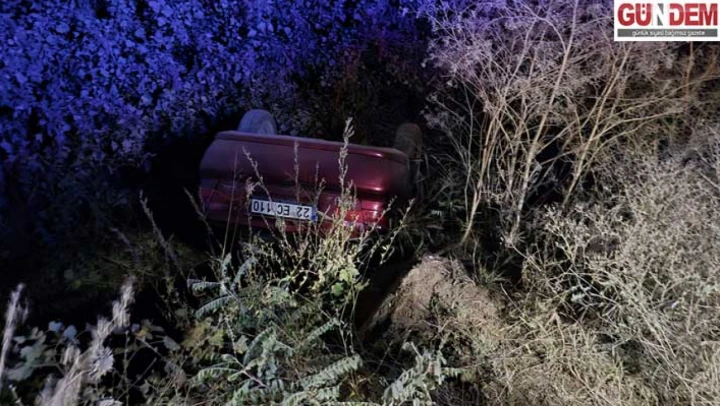 Edirne'de devrilen otomobilin sürücüsü yaralandı.