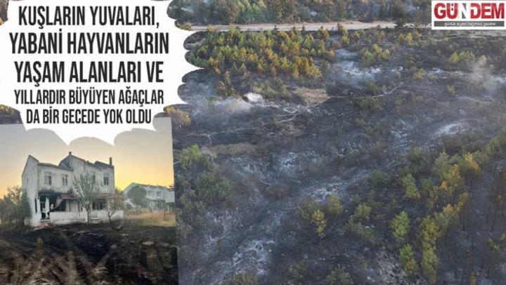 Sabahın ilk ışıklarıyla birlikte yangının geride bıraktığı yıkım gözler önüne serildi. On binlerce dekar ormanlık ve tarım arazisindeki ağaçlar tamamen küle dönerken, bölgedeki ekosistem ağır bir darbe aldı. Kuşların yuvaları, yabani hayvanların yaşam alanları ve yıllardır büyüyen ağaçlar da bir gecede yok oldu.