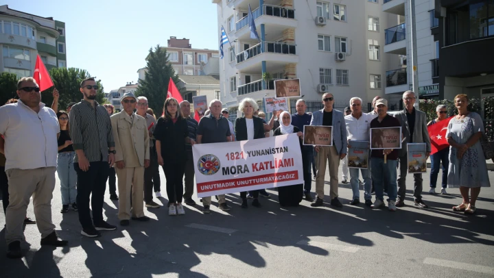 Balkan Rumeli Türkleri Konfederasyonu Edirne Temsilciliği öncülüğünde bir araya gelen sivil toplum kuruluşu üyeleri Türk bayrağı ve 'Mora katliamını unutmadık, unutturmayacağız' yazılı pankartla Yunanistan'ın Edirne Konsolosluğuna yürüdü ve kapısına siyah çelenk bıraktı.