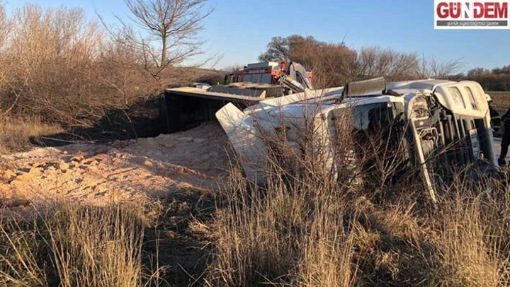 K.Ş. idaresindeki 42 KG 160 plakalı tır, Edirne-Lalapaşa kara yolunda, sürücüsünün direksiyon hakimiyetini kaybetmesi sonucu devrildi.