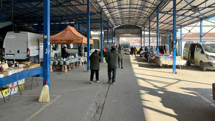 Pazar alanında alışılmış kalabalık görüntüler yerini sessizliğe bırakırken, soğuk ve yağışlı havanın alışverişi olumsuz etkilediği dikkat çekti.