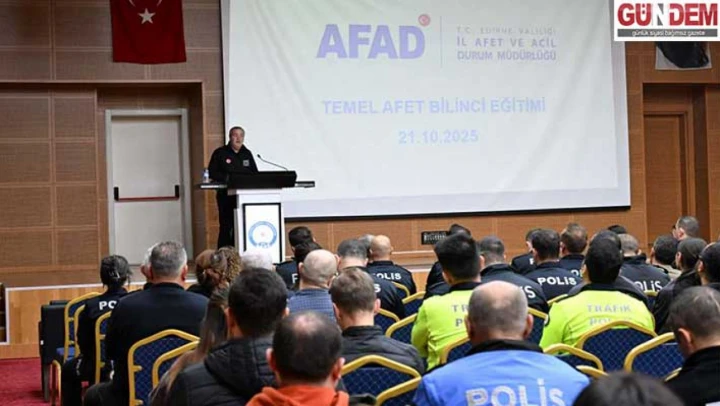 Edirne Emniyet Müdürlüğü ve Edirne AFAD Müdürlüğü işbirliğinde emniyet personeline yönelik Temel Afet Bilinci Eğitimi düzenlendi.