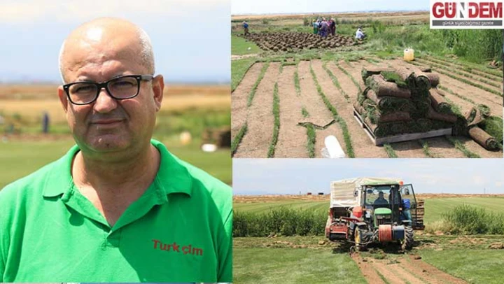 'Hasat sonrasında burada ürettiğimiz çimi yurt içi ve yurt dışından talep eden müşterilerimize veriyoruz. Rulo çim, park ve bahçeler, siteler, futbol ve golf sahaları, yol, şev, geniş ve yeşil alan çalışmaları gibi peyzajla ilgili olan alanlarda kullanılıyor.