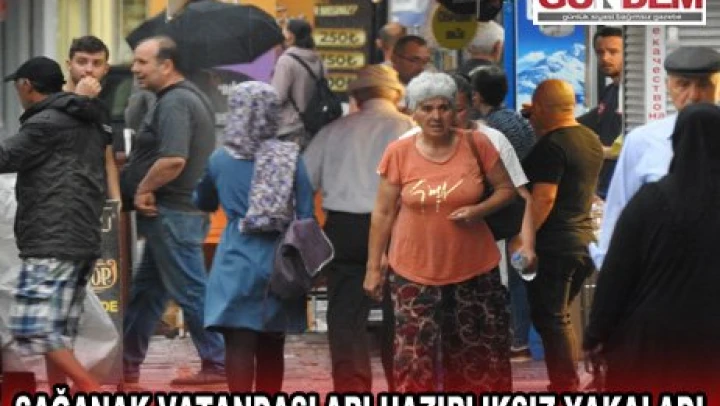 Vatandaşlar sabah saatlerinde sağanak yağışa takıldı. İşlerini halletmek üzere sabahın erken saatlerinde dışarı çıkan vatandaşlar gök gürültülü ve sağanak nedeniyle zor anlar yaşadı. Hava sıcaklıkların yüksek olması nedeniyle yazlık kıyafet giyen vatandaşlar sağanağın etkisiyle kısa sürede sırılsıklam oldu.