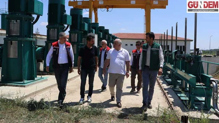 Edirne Meriç Sulaması Projesi kapsamında yapılan pompa istasyonlarını da gezen Subaşı ve Bayazıt, yetkililerden çalışmalar hakkında bilgi aldı.