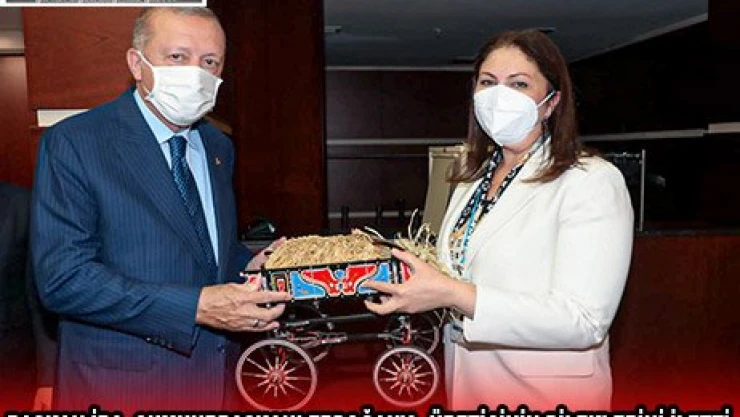 Türkiye Cumhuriyeti Başkanı Erdoğan'a çeltik demeti yüklü minyatür talika