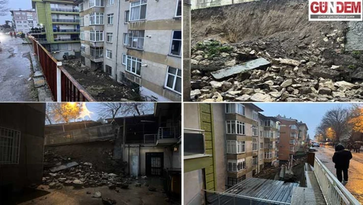 Edirne'de sağanak nedeniyle bir apartmanın istinat duvarı çöktü.