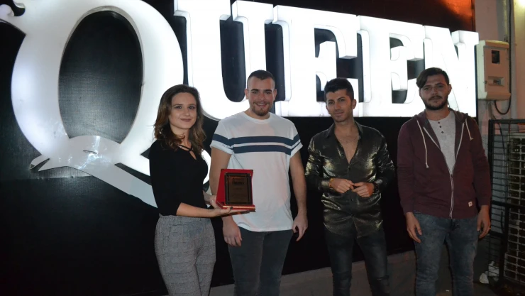 '˜Queen' işletme sahibi Sezer Ataş'a plaket takdim ettiler. Gece boyunca devam