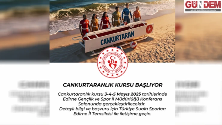 Edirne Gençlik ve Spor İl Müdürlüğü tarafından organize edilen Cankurtaranlık Kursu, 3-4-5 Mayıs 2025 tarihlerinde Edirne Gençlik ve Spor İl Müdürlüğü Konferans Salonu'nda gerçekleştirilecektir.