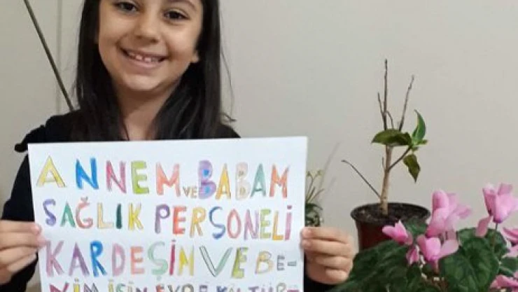 Edirne'de sağlık çalışanlarının çocukları yaptıkları resimlerle 'evde kal' çağrısında bulundu.
