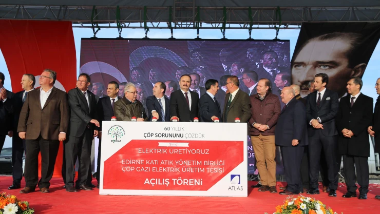 Edirne Katı Atık Yönetim Birliği Çöp Gazı Elektrik Üretim tesisi törenle açıldı. Açılışta konuşan Edirne Belediye Başkanı Recep Gürkan, 'Tesisimizde şu an itibariyle saatte bin 600 kilovat olmak üzere ayda 1 milyon 152 bin kilovat enerji üretmiş olacağız. Bu gerçekten çok büyük bir rakam. Türkiye'de meskenlerin ayda elektrik tüketimi 100 kilovat civarında, yani bu tesiste her saatte, 16 bin evin bir aylık elektrik ihtiyacı üretilmiş olacak' dedi.