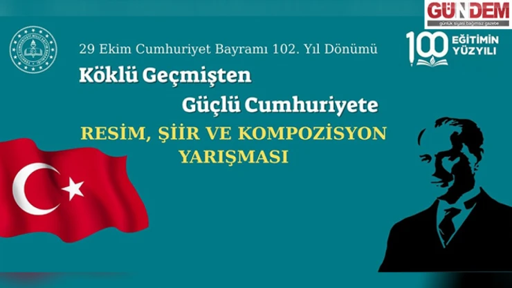 Cumhuriyetin 102. yıl dönümü kutlamaları kapsamında, ilk ve ortaokul öğrencileri arasında 'Köklü Geçmişten Güçlü Cumhuriyete' konulu resim, şiir ve kompozisyon yarışması düzenlenecek.