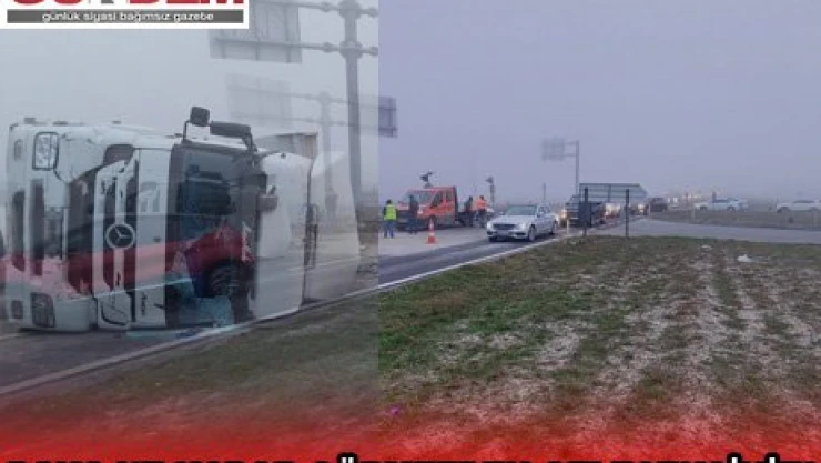 isterken direksiyon hâkimiyetini kaybederek yan yattı. Kamyon sürücüsü
