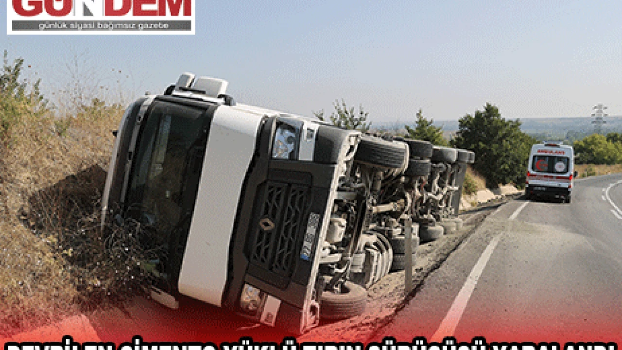 DEVRİLEN ÇİMENTO YÜKLÜ TIRIN SÜRÜCÜSÜ YARALANDI
