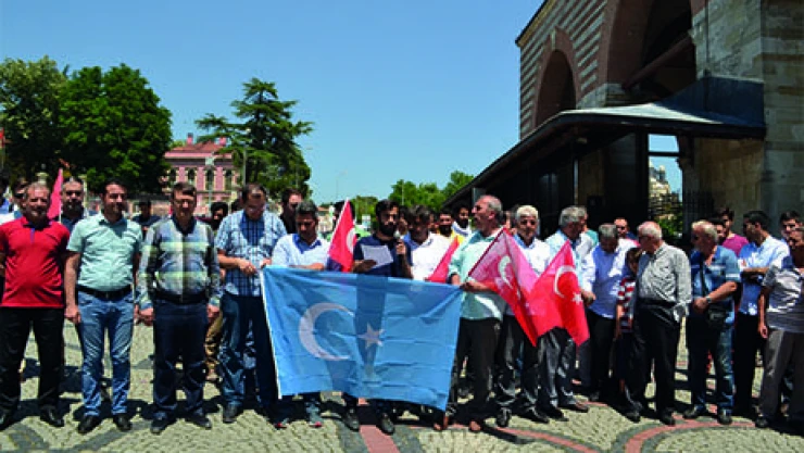 Edirne'de bir grup vatandaş Cuma namazı çıkışında yaptığı basın açıklamasıyla, Çin'in Doğu Türkistan'daki Müslümanlara yönelik uygulamaları protesto etti.