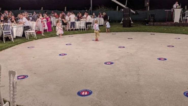 Ersin ve Fatma Ercan çiftinin çocukları Tuna ve Doruk'un sünnet düğününe gelen davetliler, açık hava düğün salonu girişinde görevlilerce karşılandı. Ateşleri ölçülen ve dezenfektan tutulan davetliler, sosyal mesafe kuralına uymaya çalıştı.