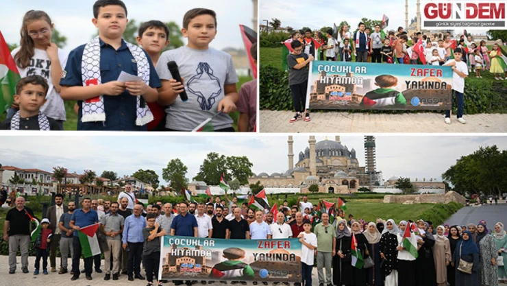 Anadolu Gençlik Derneği (AGD) Edirne Şubesince düzenlenen etkinlikte aileleriyle Selimiye Meydanı'nda toplanan çocuklar, Türk ve Filistin bayraklarıyla slogan attı.