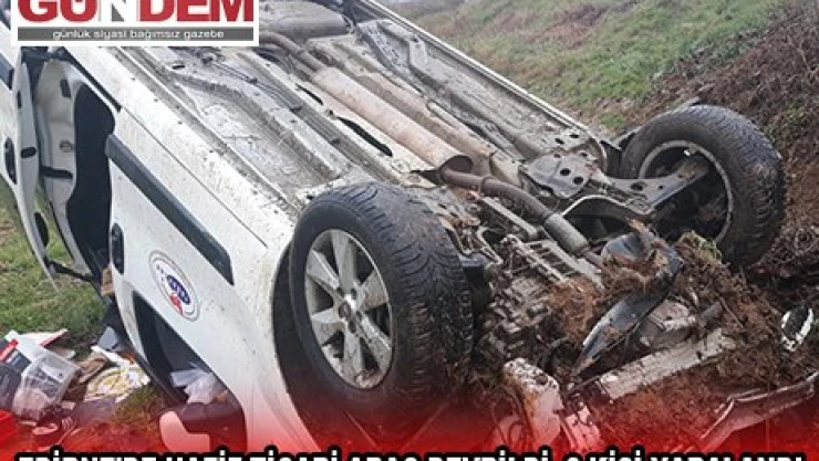 EDİRNE'DE HAFİF TİCARİ ARAÇ DEVRİLDİ, 3 KİŞİ YARALANDI