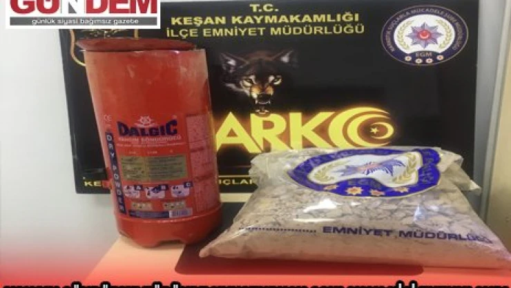 Edirne'nin Keşan ilçesinde taksinin yangın söndürme tüpünde uyuşturucu saklayan şüpheli tutuklandı.