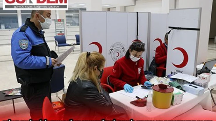 Emniyet Müdürlüğü haber merkezinin "kan bağışı" anonsunu duyan polis