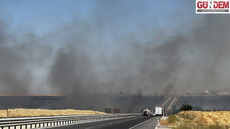 Geniş alandaki anız yangınına müdahale sürüyor. AA