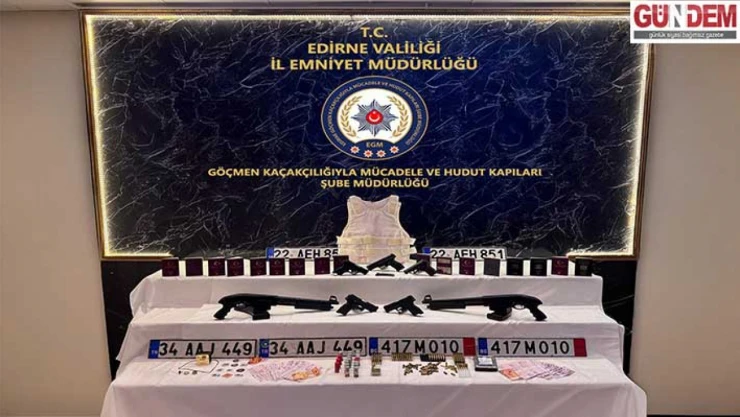 İkamet aramalarında 5 tabanca ve çok sayıda fişek, 2 av tüfeği, çelik yelek, zulalı otomobil, 16 Türk, Bulgar ve Suriye pasaportu, Türk ve yabancı ülke plakaları, 10 gram altın ve 15 bin lira para ele geçirildi.