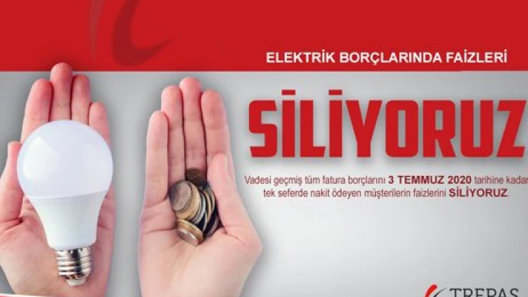 Trakya Elektrik Perakende Satış A.Ş., elektrik fatura borçlarını 3 Temmuz 2020 mesai saati bitimine kadar tek seferde nakit ödeyen abonelerin tüm faiz borçlarını sileceğini açıkladı.