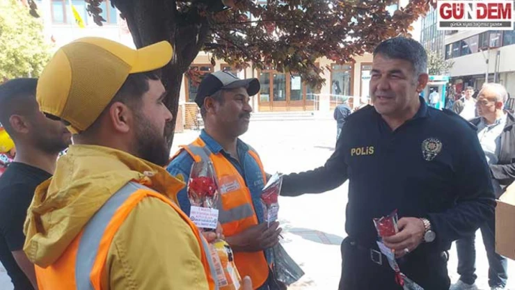 Edirne'de 1 Mayıs İşçi Bayramı etkinlikleri kapsamında sahne kurulumu ve bariyer çekiminde çalışan personele Emniyet Müdürü Onur Karaburun çiçek vererek bayramlarını kutladı. İl Emniyet Müdürü Onur Karaburun, İşçi Bayramı'nda çalışan personele teşekkür etti.