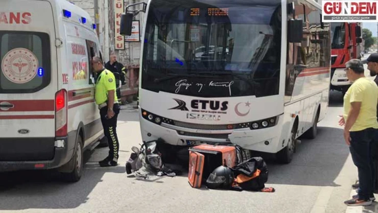 Çarpışmanın etkisiyle midibüsün altında kalan motosiklet sürüklendi.