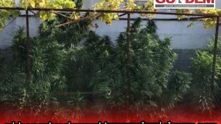 Evin bahçesinde yapılan aramada 32 kök Hint keneviri ve 4 adet uyuşturucu içiminde kullanılan aparat ele geçirildi.