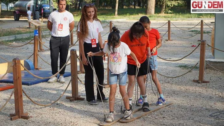 Burada oluşturulan parkurda yer alan halat çekme, koca ayak, mangala, çember çevirme ve mas güreşi gibi oyunları deneyimleyen çocuklar doyasıya eğlendi.
