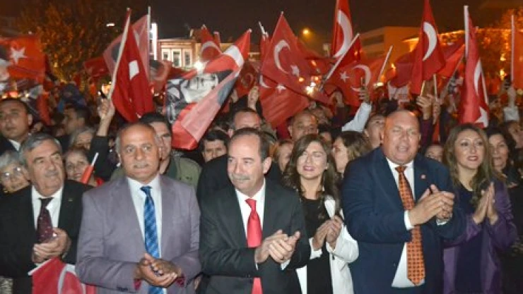 diyene' sloganları, Türk bayrakları ve meşalelerle görsel bir şölen sundular.