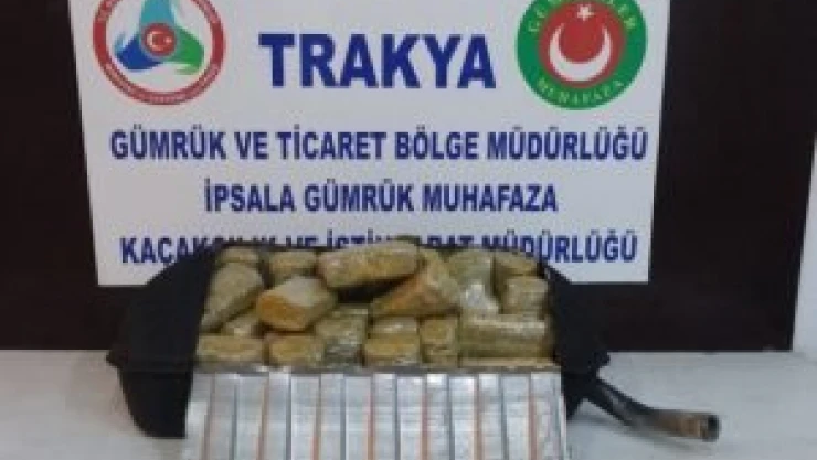 Edirne'nin İpsala Gümrük Kapısı'nda geçtiğimiz Mayıs ayında Türkiye'ye giriş yapmak üzere gelen sürücülüğünü Makedon uyruklu D.A.'nın yaptığı, Makedonya uyruklu N.A. ve N.A.'nın yolcu olarak bulunduğu otomobil şüphe üzerine X- Ray taramasına sevk edildi. Şüpheli yoğunluğa rastlanılması üzerine otomobilde yapılan detaylı aramada, yakıt deposuna gizlenmiş vaziyette 41 pakette daralı ağırlığı 23 kilo 220 gram gelen esrar bulundu.