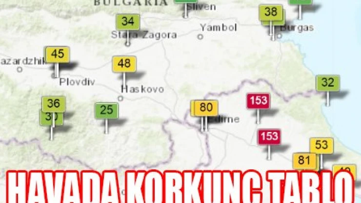 Trakya bölgesindeki üç ilin Gerçek Zamanlı Hava Kalitesi (AQI) verileri, insan sağlığı için korkutucu seviyelere yükseldi. Dün açıklanan verilerek göre Edirne'de hava kirliliği oranı en yüksek yer Keşan ilçesi olarak dikkat çekerken Tekirdağ merkez, Kırklareli merkez ve Lüleburgaz ilçesi ise Trakya bölgesinin en kirli havaya sahip üç şehri oldu.
