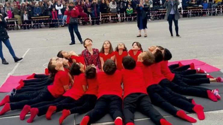 Edirne Yüksel Yeşil İlkokulu'nda düzenlenen kutlama programında sahneye çıkan 4 '“ B sınıfı öğrencileri yoga eğitmeni Nefize Ramadan ile birlikte hazırladıkları yoga koreografisini izleyenlere sundu. Müzik eşliğinde yoga duruşlarından dağ duruşu, saygı duruşu, ağaç, kobra, nilüfer, kayık ve hareketsiz beden duruşlarını yapan çocuklar izleyenlerden tam not aldı.