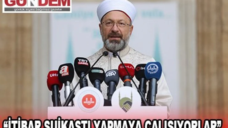 Diyanet İşleri Başkanı Ali Erbaş, kurum olarak yapıcı, yararlı, ufuk açıcı eleştirileri kimden gelirse gelsin önemsediklerini ve dikkate aldıklarını belirterek, 'Ancak milletimizin dini ve sosyal hayatına, insanlığın huzur ve geleceğine hizmet eden teşkilatımızın mesnetsiz ithamlarla yıpratılmaya çalışılması asla kabul edilebilir bir tutum değildir.' dedi.