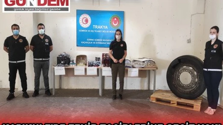 Ticaret Bakanlığı Gümrük Muhafaza ekipleri tarafından Kapıkule Gümrük Kapısı'na gelen bir tırın yedek lastiğinin içerisinde 46 kilo metanfetamin cinsi uyuşturucu ile bir yolcu valizindeki giysilerin ceplerinde 1.690 adet hormon ilacı ele geçirildi.