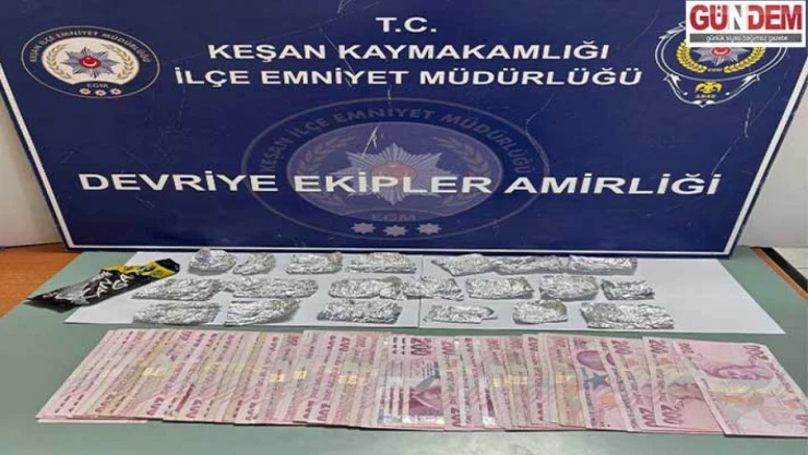 Edirne'nin Keşan ilçesinde gerçekleştirilen polis uygulaması sırasında bir kişinin üzerinde uyuşturucu maddeye rastlandı.