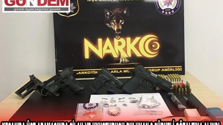 Şüphelilerin üst aramasında ve adreslerinde yapılan aramada 12 paket metamfetamin, ilaç kutusu içerisinde metamfetamin, kağıda sarılı eroin, 3 tabanca, tabanca gövdesi, tabancalara ait şarjör ile 62 mermi, biri oto anahtarından yapılan 2 bıçak ele geçirildi.