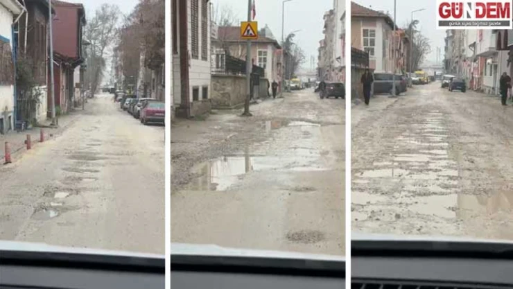 Caddede oluşan çukurların onarılmaması ve düşen her yağışta çamur olması tepkilere yol açıyor.